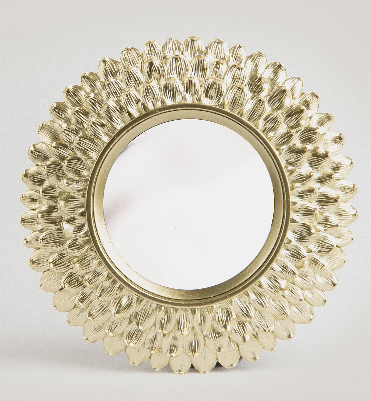 Pasqyra Petal vjen e formësuar me teksturë të petaleve në ngjyrë të argjend. Shkëlqimi, pamja speciale dhe forma e rrumbullakët, lejojnë që kjo pasqyrë të jetë e përshtatshme për hapësira të vogla dhe të mëdha, duke ofruar një reflektim kaq elegant.