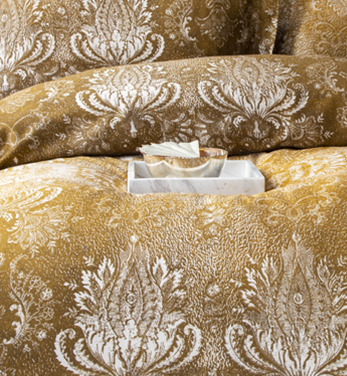 Seti i çarçafëve Gabore, përmes dizajnit autentik dhe ngjyrës magjepsëse prezanton frymën moderne të stilimit të dhomës së gjumit. I gjithë dizajni i këtij seti, sjell kombinimin artistik të dy ngjyrave me pikturime lulesh të bardha. Ky set çarçafësh ju mundëson ambient higjenik larg alergjive dhe bakterieve.