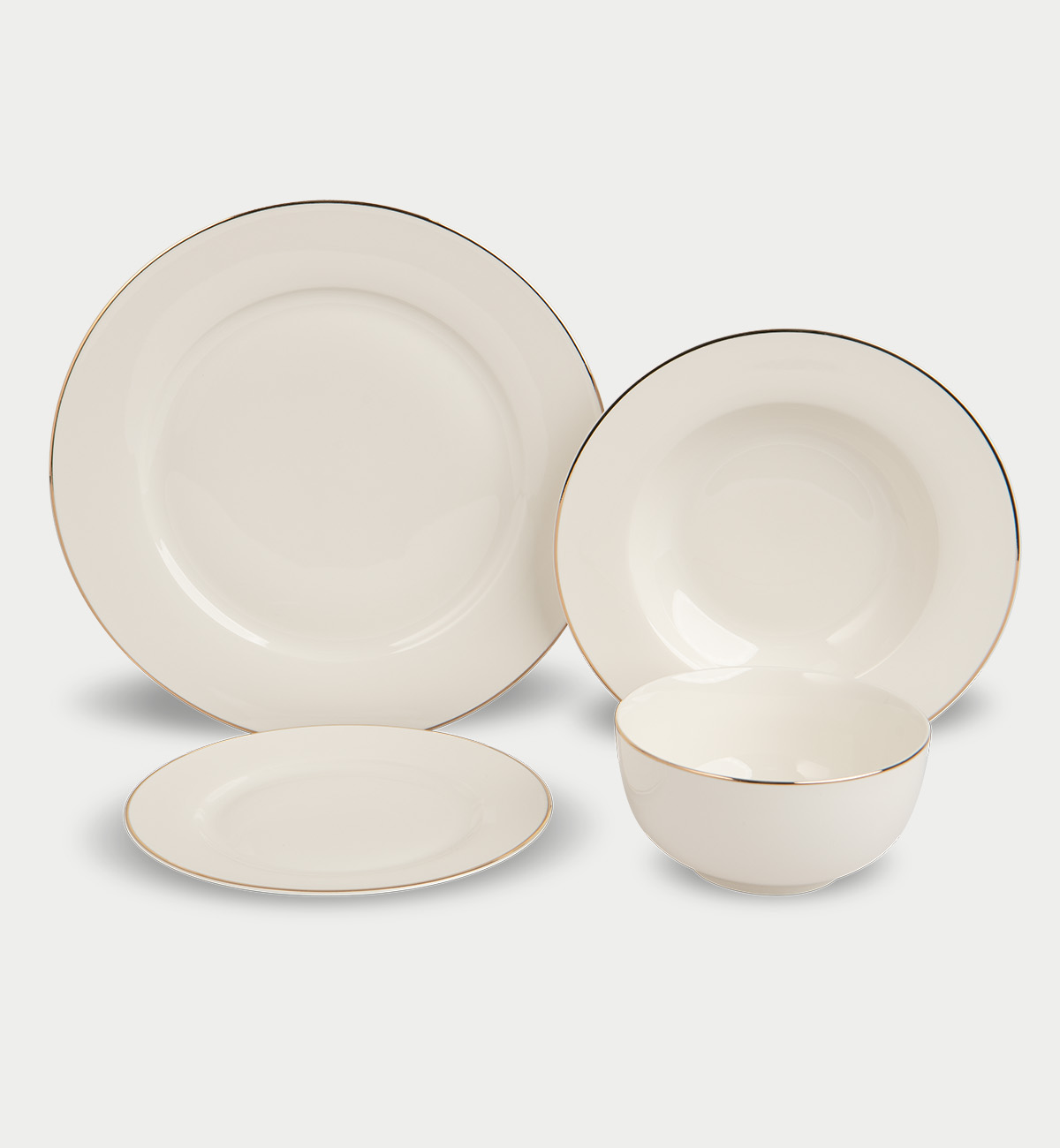 Dimensioni / Kompozicioni: Seti ka 24 pjesë: 6x pjata për ushqim, 6x pjata për supë, 6x pjata për desert, 6 për sallatë