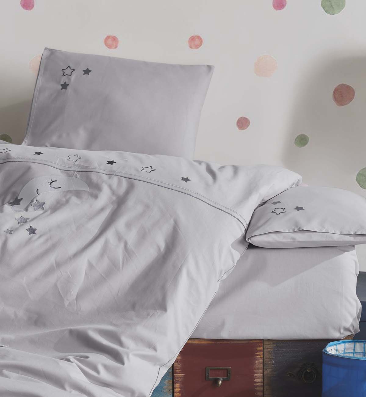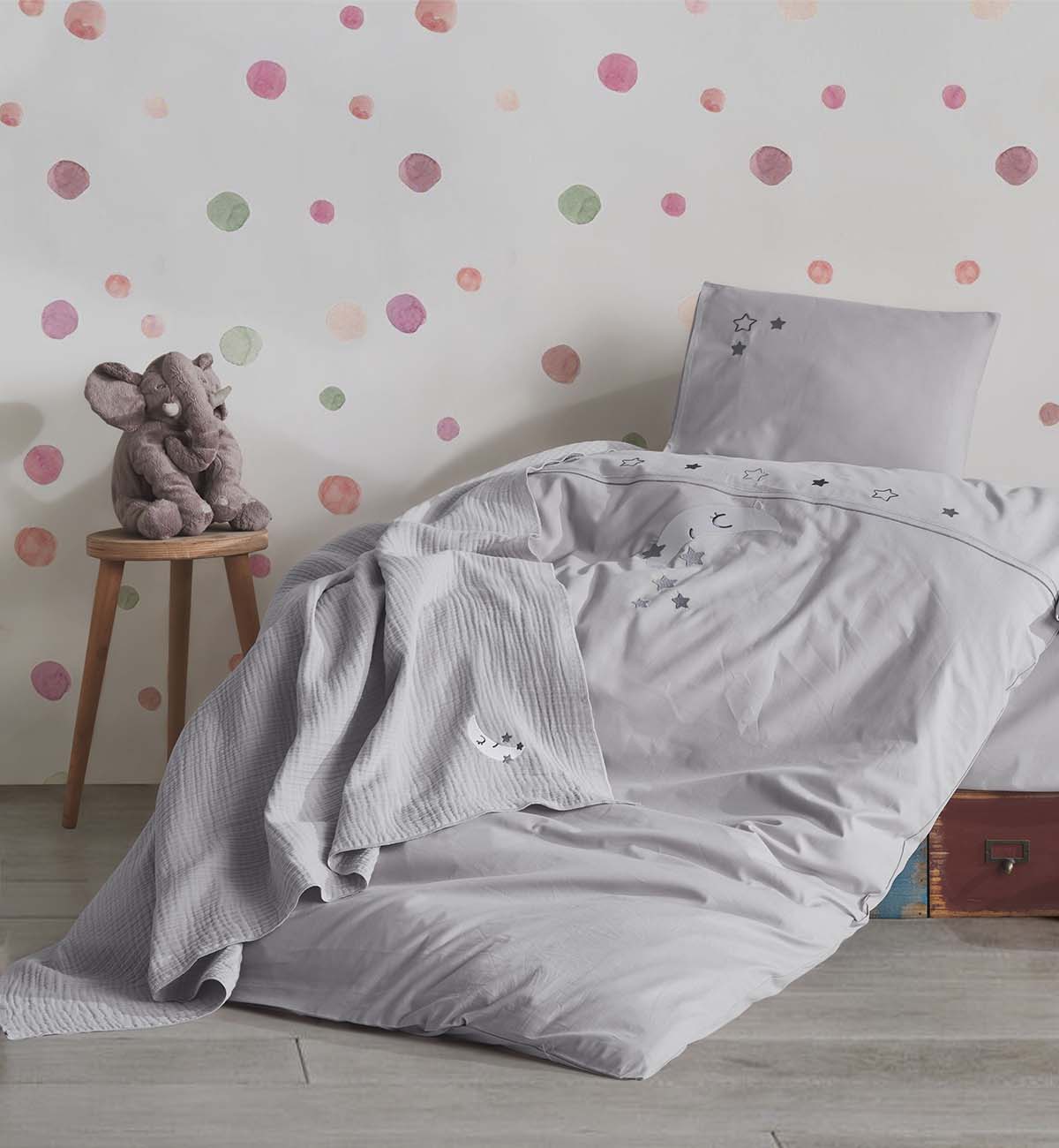 Сетот постелнини за деца неопходен дел од детската соба, кој нуди соодветна и безбедна средина за добар сон. Овие комплети се внимателно дизајнирани да ги задоволат потребите на децата и да се прилагодат на нивниот развој. Овој комплет чаршафи ви обезбедува хигиенска средина далеку од алергии и бактерии.